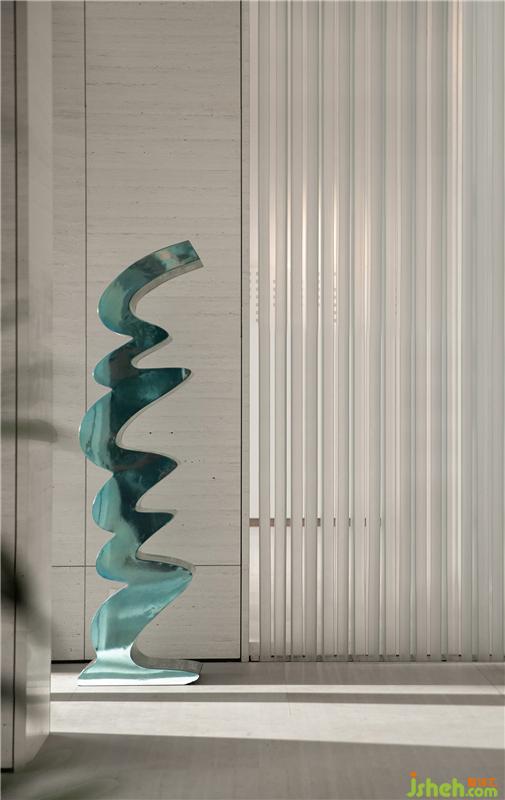 落地窗旁,取自渭河水意象的黑陶雕塑,記錄著這片土地悠久深遠(yuǎn)、源源不斷的歷史文脈,也象征著生生不息的華夏文明。
