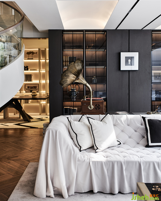△從藝術(shù)感的樓梯向下,我們所期待的生活場(chǎng)景一一呈現(xiàn),可以感覺(jué)到文化在流淌、看到主人的修為以及對(duì)中西生活方式開(kāi)放而包容的態(tài)度。
