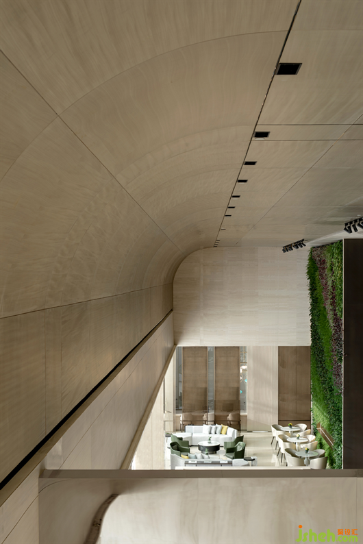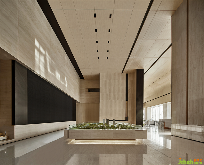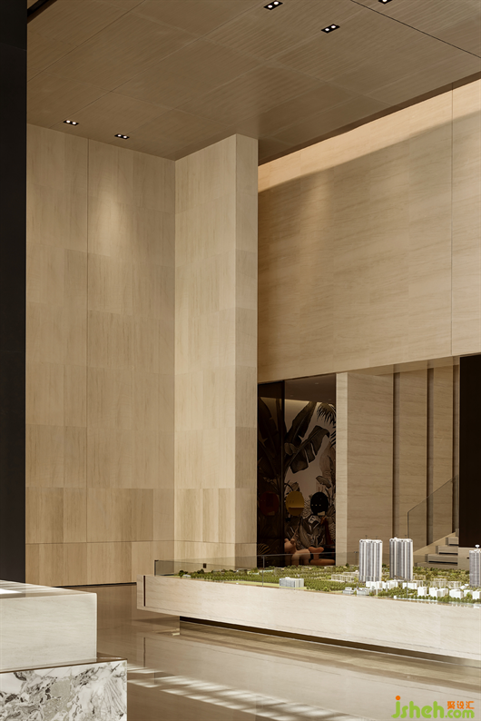 售樓處設(shè)計(jì)師以各種精巧的細(xì)節(jié)來(lái)消解大尺度空間帶來(lái)的距離感,并在材料的質(zhì)感和色彩上注入溫度,交織出一個(gè)與人親近,簡(jiǎn)潔純粹的公共空間。