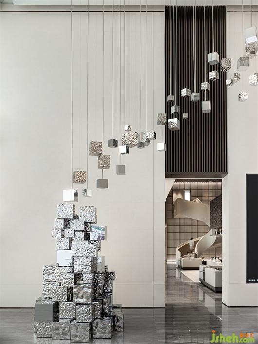 營銷中心設計用幾何的體塊組合,結合現(xiàn)代的金屬材料,形成抽象的工業(yè)部件,表達沈陽的工業(yè)創(chuàng)新精神?!皷|方魯爾”不息、精神意志不屈。