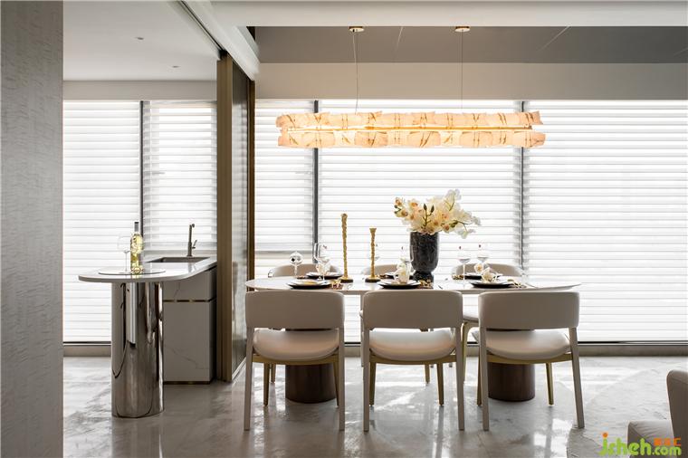 客餐廳一體+開放式廚房,空間視野開闊,動區(qū)都處于充裕的采光面之下。