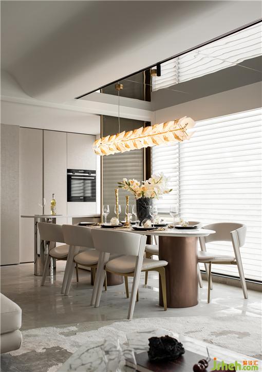 開放式的廚房內側利用定制的吧臺延展廚房功能,并與餐廳互補,充分利用每一寸空間。