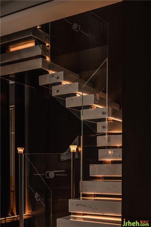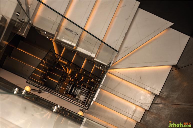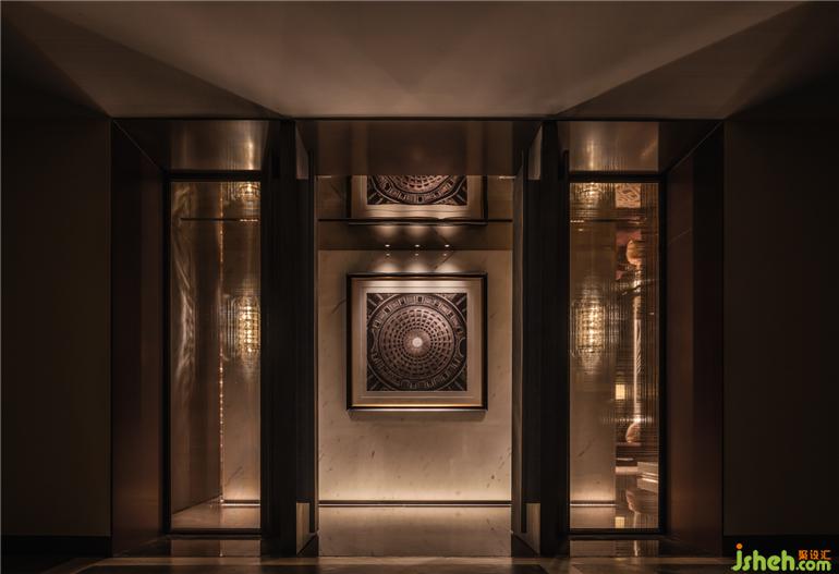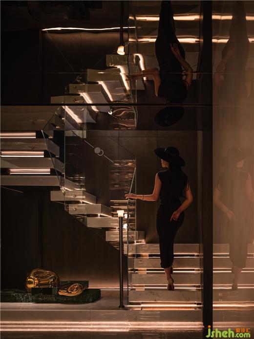 一層入口,以耀眼奪目的珠寶展示區(qū)作為第一體驗區(qū),鑒賞珠寶臻品的藝術魅力。中海寰宇天下會館設計定制的藝術屏風與深色皮革材料,鋪就沉穩(wěn)隱奢的氣氛,熠熠閃亮的燈飾與陳設品,詮釋了空間的獨特之處。