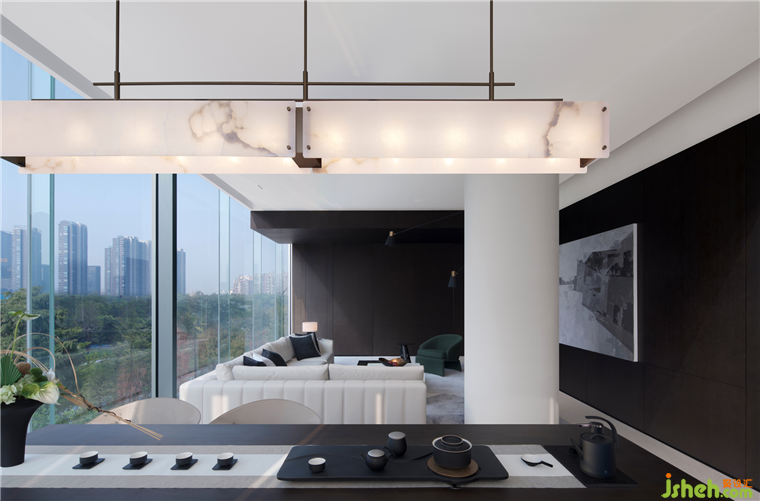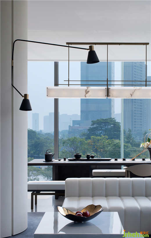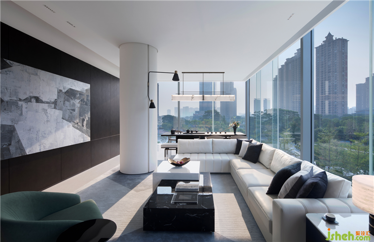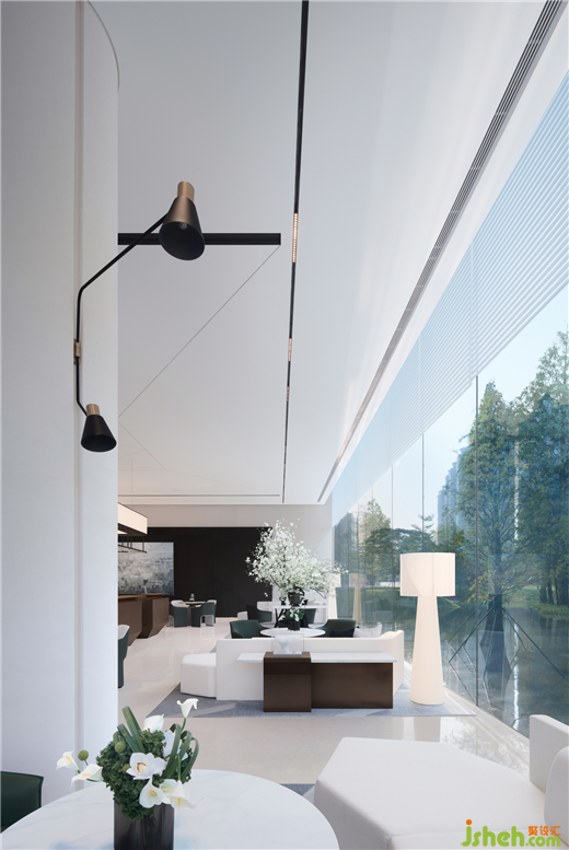 180°圍合面的玻璃幕墻,順德悅府示范區(qū)設(shè)計(jì)將變幻的自然光與公園景致完全納入室內(nèi),追求光與色的交融,形與意的共性,在簡約質(zhì)樸中見豐富,于光影中見層次。