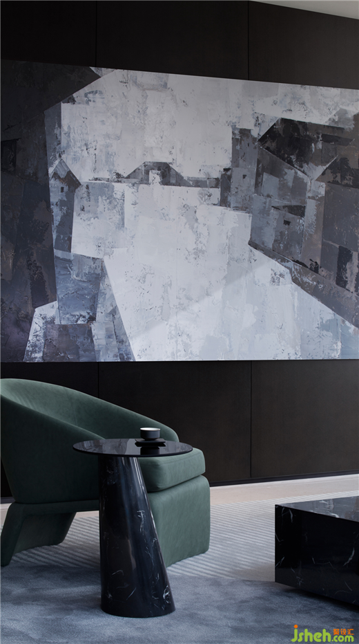 不同的色調(diào)與材質(zhì)肌理進(jìn)一步豐富界面的空間表情,設(shè)計(jì)用材種類很少,注重呈現(xiàn)以簡單的選材塑造干凈而富有力量的氣場。