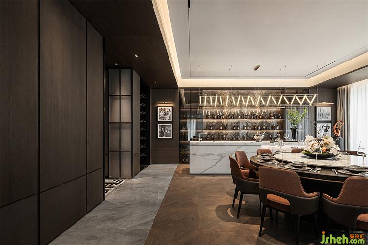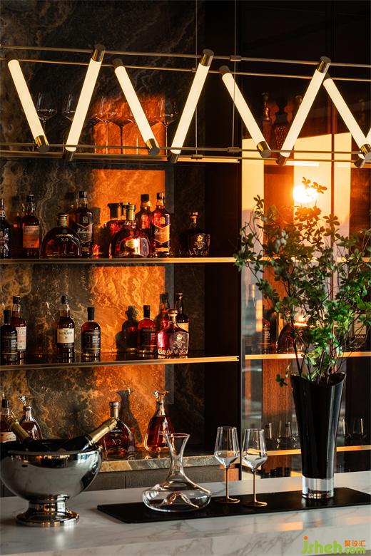 水吧向內(nèi)側(cè)的延伸,是極具展示屬性的酒窖,在用餐的間隙,挑上一瓶紅酒,點(diǎn)染用餐的情調(diào)。