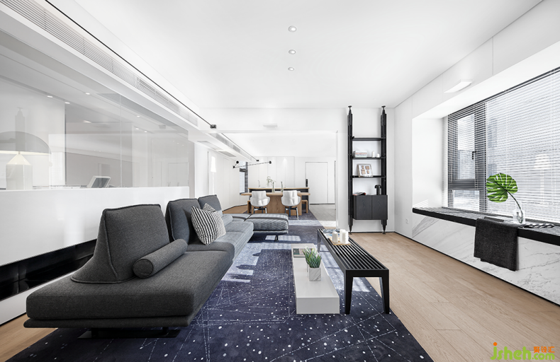 書桌前的玻璃也很有考究,可以在透明和非透明之間自由切換,裝修設(shè)計實用的同時保障了私密性。