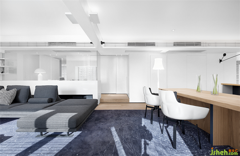 沙發(fā)下是一塊帶有銀河光輝的地毯,一直從客廳延伸到餐廳。坐在沙發(fā)上就好像踏步在璀璨的星河中,大大地滿足了小孩子的好奇心和探索欲。裝修設(shè)計