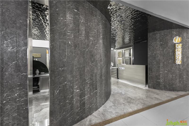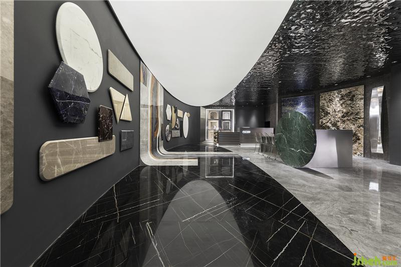 從人類開始修造建筑之初,建筑與石材之間就保持著千絲萬縷的內(nèi)在聯(lián)系。本案是石材展廳項(xiàng)目,設(shè)計(jì)不僅需展示不同石材的色澤、紋理和質(zhì)地特點(diǎn);更聚焦于石質(zhì)材質(zhì)的肌理表現(xiàn)而激發(fā)參觀者的視覺聯(lián)想。因此,創(chuàng)作在展廳界面、元素形態(tài)、色調(diào)搭配以及配光等方面都嘗試突破以往石材展示的固有形式:由靈感激發(fā)的設(shè)計(jì)創(chuàng)意揉合現(xiàn)代藝術(shù)的編排形式,將“石”的不同性格感性化地表露出來。