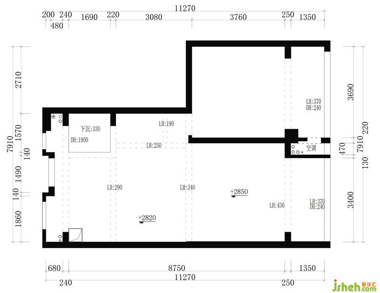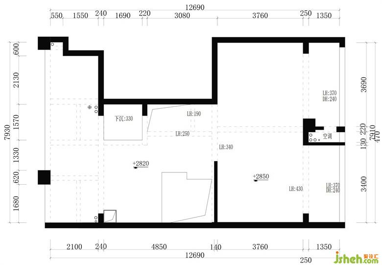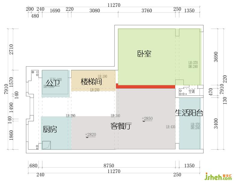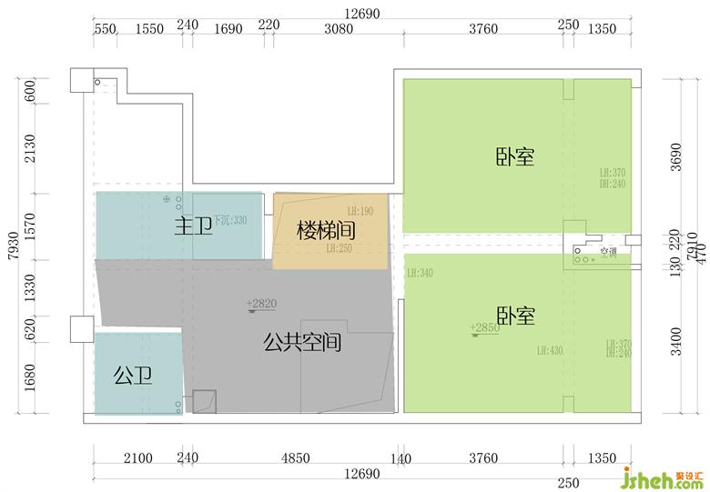 原結構的二樓有大量空間得不到有效應用,只能安排兩個房間,且中間公共空間采光并不足夠。