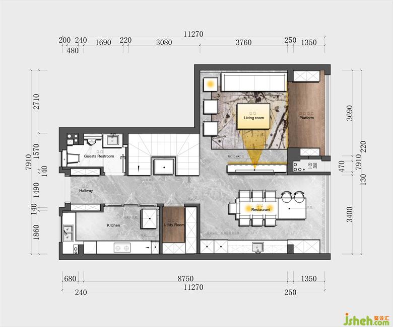 本項目保利·中航城為九江平民住宅,室內設計師面向的是九江城市的年輕家庭??偯娣e對于三口之家來說十分寬裕,但是由于上下復式結構的原因,單層利用率不高。所以在重新規(guī)劃設計時,重點考慮了如何通過對空間的更合理規(guī)劃,營造美觀且宜居的生活環(huán)境,塑造有品質生活的家居空間。