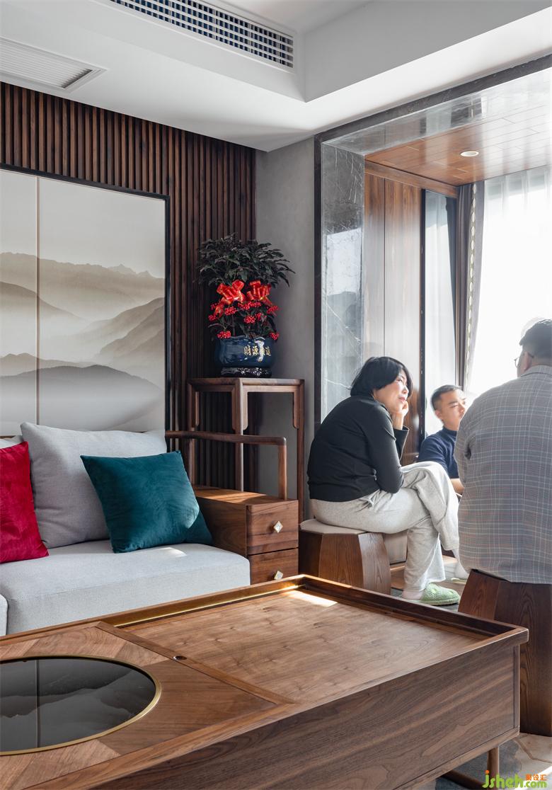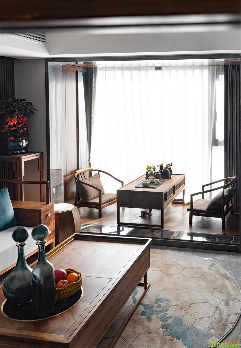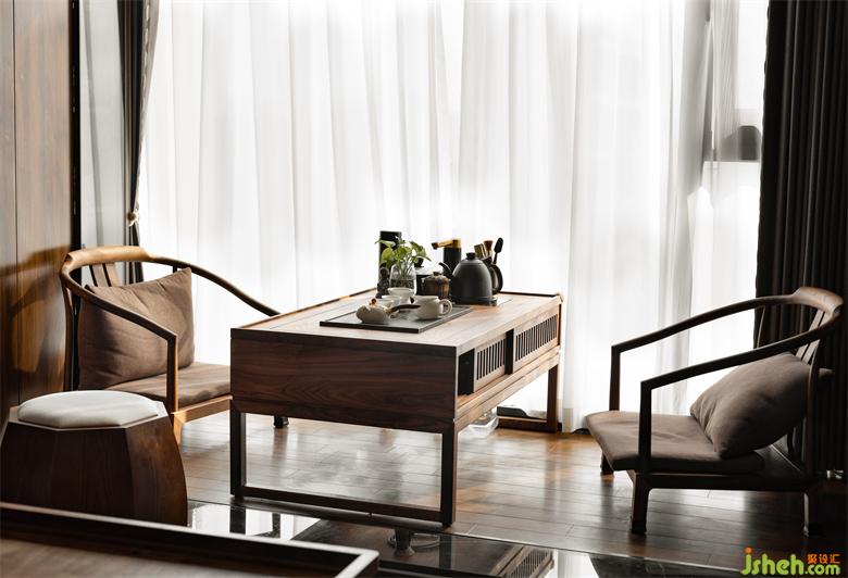 規(guī)劃出的茶空間氛圍感十足,室內設計師半透的白色窗簾提供朦朧的美感,而在拉開窗簾后,高樓層的最佳陽光就會完美呈現出來。即便處于嚴寒冬日,采用的地暖也能讓住戶舒適,新風系統(tǒng)則使得住戶不開窗也能享受優(yōu)質的空氣,室內設計師中央空調為本身局促的空間留出更多空間規(guī)劃使用。
