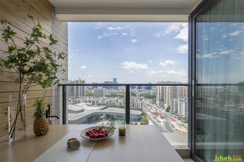 休閑陽臺的光線充足,我們在左邊的墻面做了到頂?shù)姆栏?,增加了陽臺的溫馨感,更有自然氣息,放置了折疊餐桌,不用時疊起來放到一邊不占空間,秋冬之際可以在這個開放的空間涮著喜歡的火鍋丸子,青菜,白蘿卜...