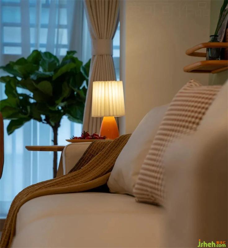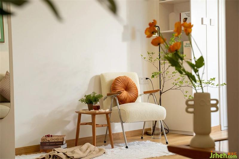 這面留大白的墻就是每個(gè)節(jié)日的背景墻,隨心布置~也是客廳的閱讀角,旁邊的收納柜留了開放的書柜,放置常閱的書本。傍晚,深夜,留一盞暖光燈,靜享閱讀的快樂。
