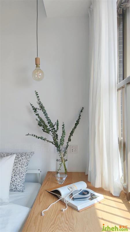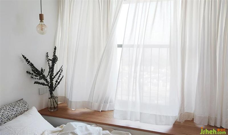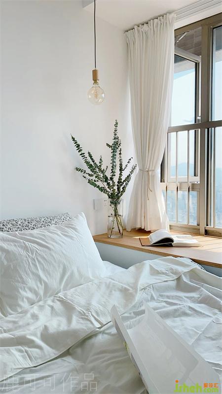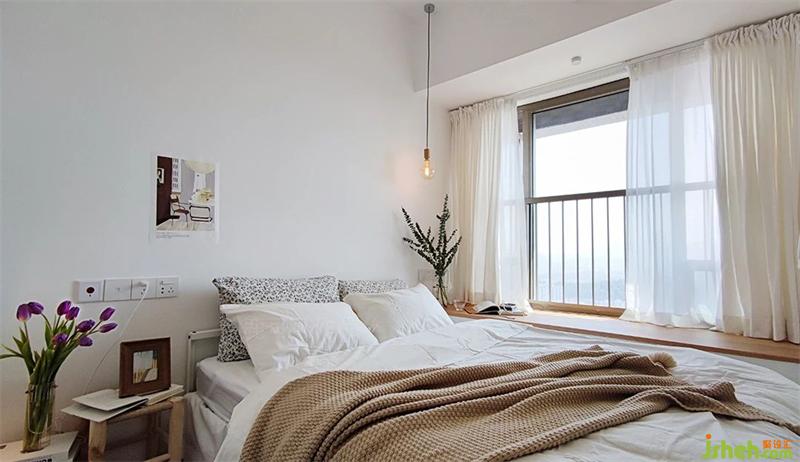 臥室是無主燈設(shè)計(jì),整體是溫柔素雅的氛圍,實(shí)木飄窗點(diǎn)綴提升溫馨感。床頭背景沒有掛裝飾畫與墻飾,KK說以后旅行時(shí)慢慢淘自己喜愛的具有紀(jì)念意義的掛畫。