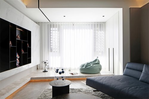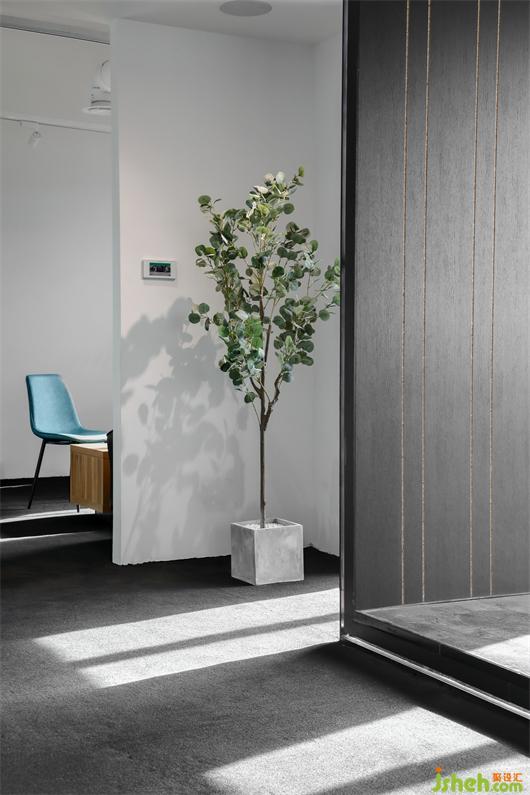 燈光下的“木頭”,白色乳膠漆、燈光、綠植、白色鵝卵石、杉木板。簡單到再簡單不過的“普通材料”經(jīng)過描繪,組合。以光影藝術(shù),做沒有藝術(shù)的設(shè)計。