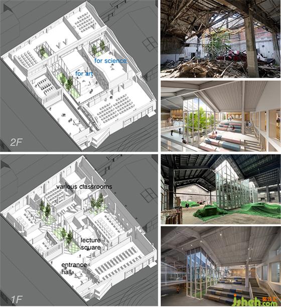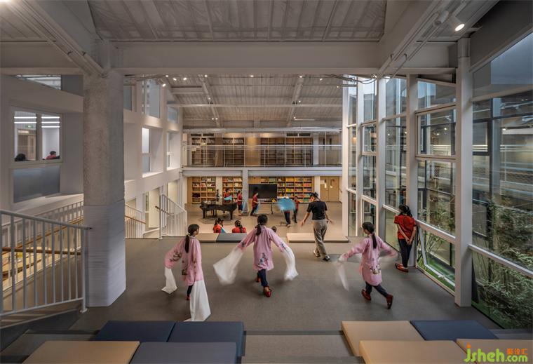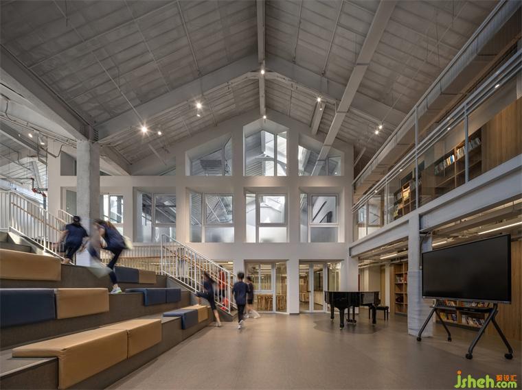 學(xué)校裝修設(shè)計綜合樓在改造成教學(xué)空間之前,曾經(jīng)是造紙廠廠房,也一度做菜市場使用。歷史保護街區(qū)的城市肌理在此得以保留,也為正澤學(xué)校的名校氣質(zhì)找到與之契合的城市建筑文脈基底。