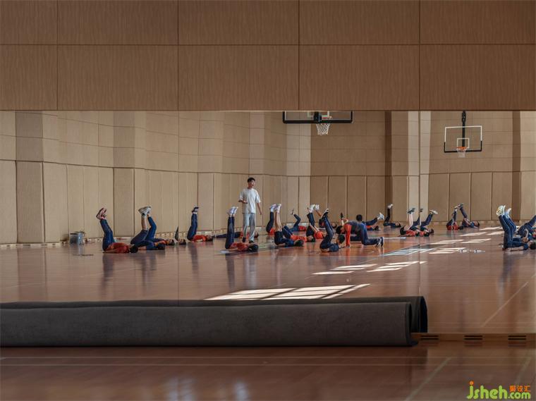體育館同樣也由倉庫改建,在這里極限容納了1個標(biāo)準(zhǔn)籃球場、2個羽毛球場。學(xué)校裝修設(shè)計室內(nèi)吸音與球場防撞材料相結(jié)合,減少回聲也減少運(yùn)動時因緩沖空間不足而帶來的碰撞受傷風(fēng)險。