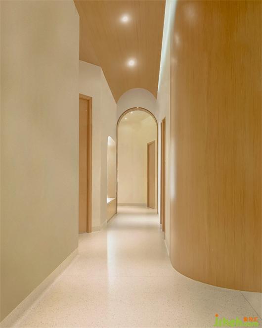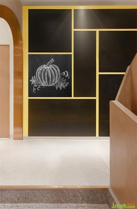 這些都是他們學(xué)院秉持的,我們在空間色彩運(yùn)用了木色與暖色給予小朋友們一種溫馨的感覺。