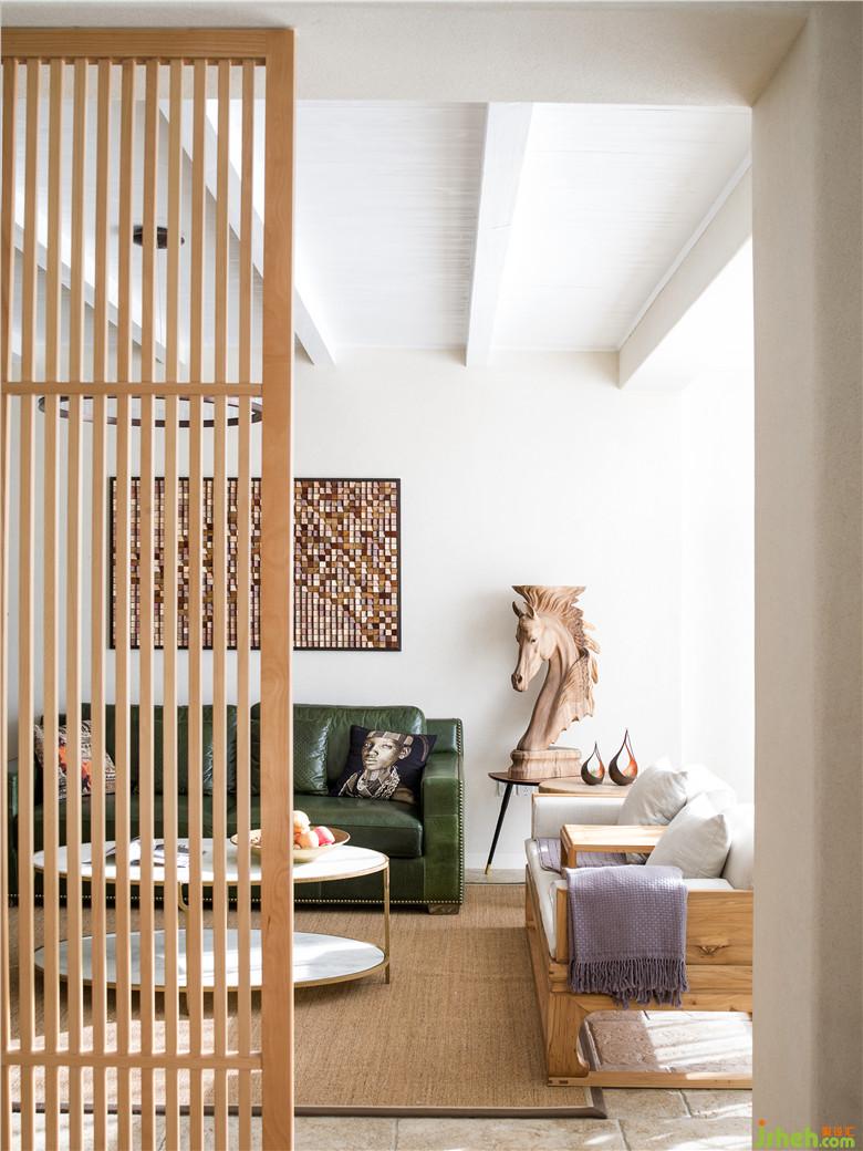 由于主人一家都熱愛旅行,都有很好品位,并對手作之物有所偏愛,因此,在這一層中既有各類木質(zhì)、金屬質(zhì)的工藝品的擺放,又有棉麻質(zhì)地的布藝的使用,輕松營造出自然又具藝術(shù)氣息的氛圍。