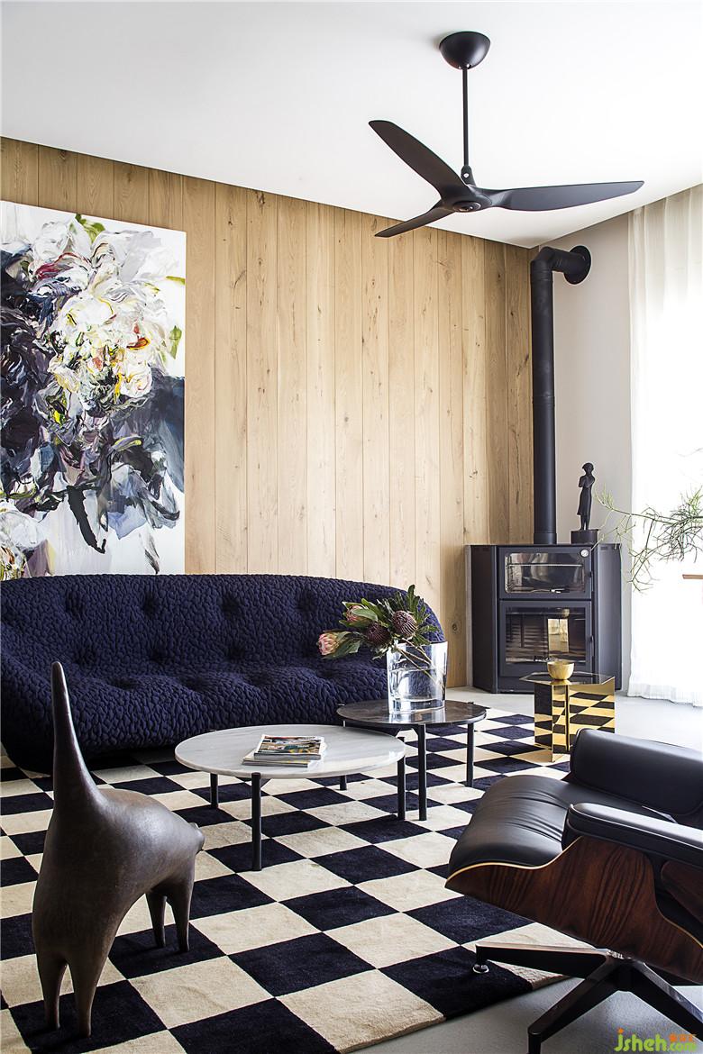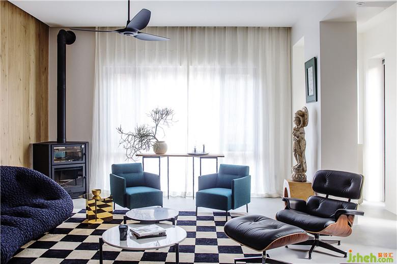 linge roset藍(lán)色扶手椅成為客廳視覺焦點(diǎn),線條洗練明朗,同時(shí)又與窗外的自然精致交相呼應(yīng)。