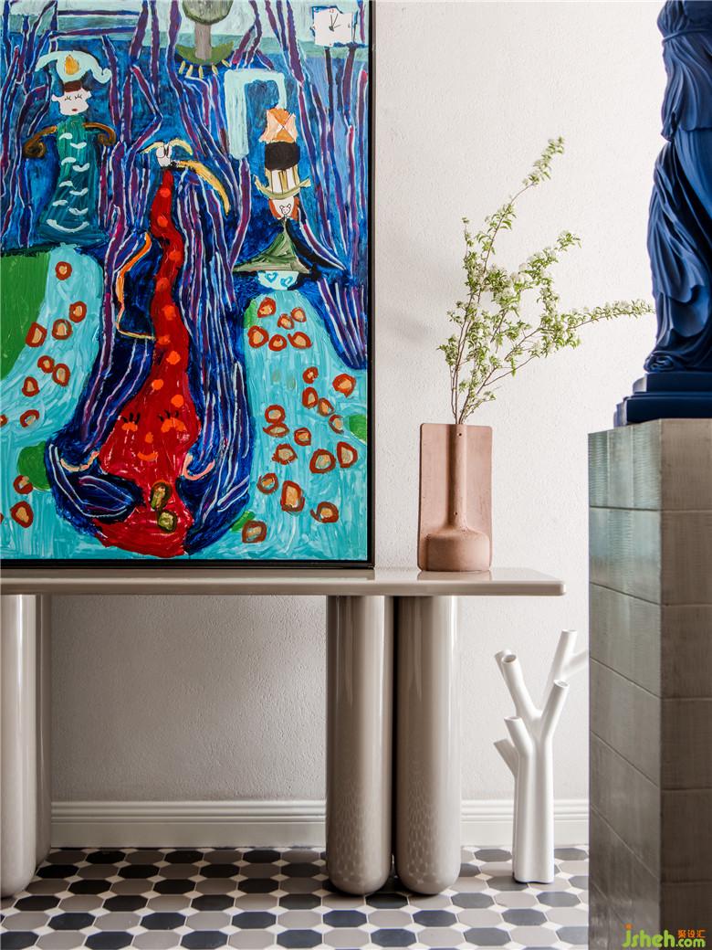 門(mén)廳的地面鋪貼了手工瓷磚,搭配勝利女神雕像,充滿古希臘浪漫爵士風(fēng)。裝修公司