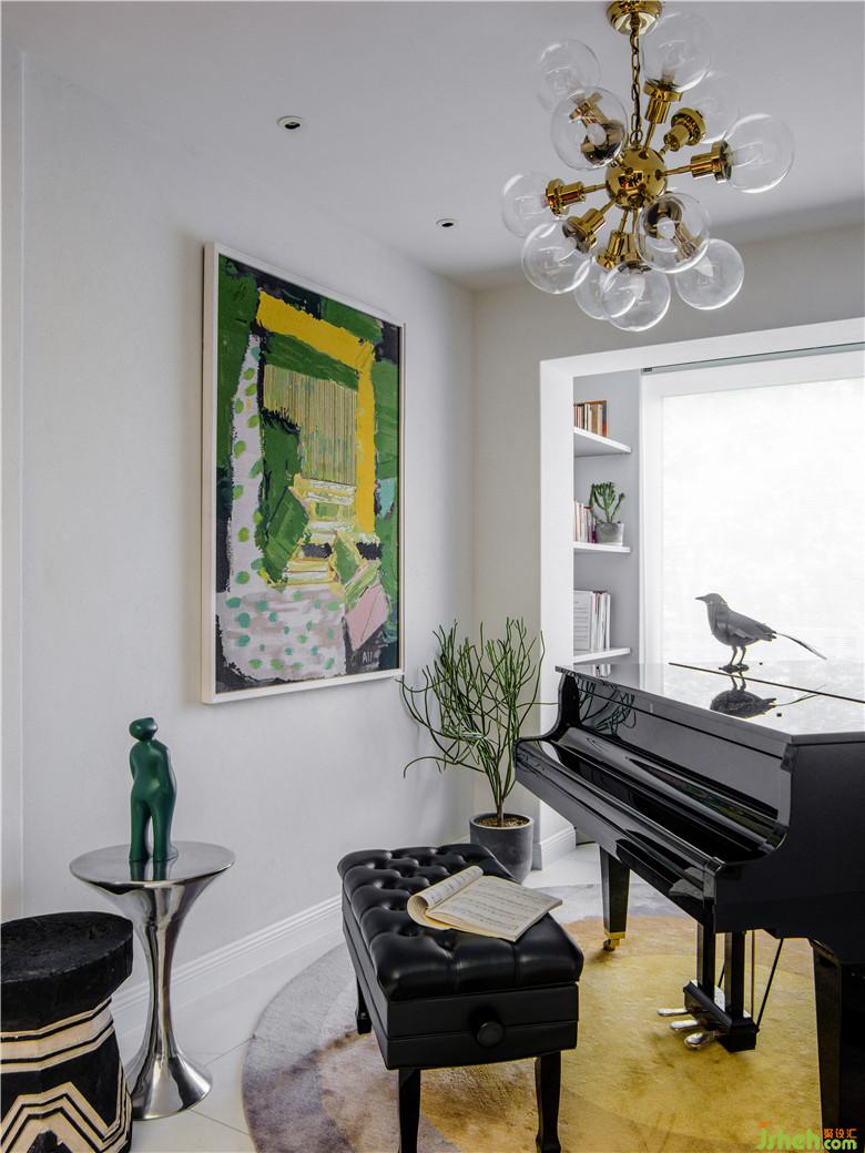 對(duì)我而言,好的室內(nèi)裝飾意味著,你一走進(jìn)去就能看到并感受到屋主的個(gè)性,一些能夠喚起點(diǎn)滴生活回憶的物件;墻上的掛畫(huà)是業(yè)主的女兒曾經(jīng)的畫(huà)作,色彩非常驚艷,我特地以這幅畫(huà)為原型去定做了大尺寸的手工織毯。