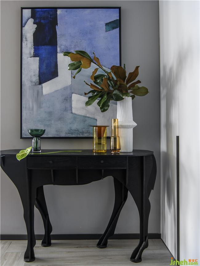 一張Elisee的駿馬玄關(guān)桌被安放在入口處,它優(yōu)雅、靈動(dòng)與墻面上的藝術(shù)作品和桌面上的迎客花卉相映成趣,從進(jìn)門(mén)的一刻就感受到這個(gè)家濃烈的生活氛圍和藝術(shù)氣息。
