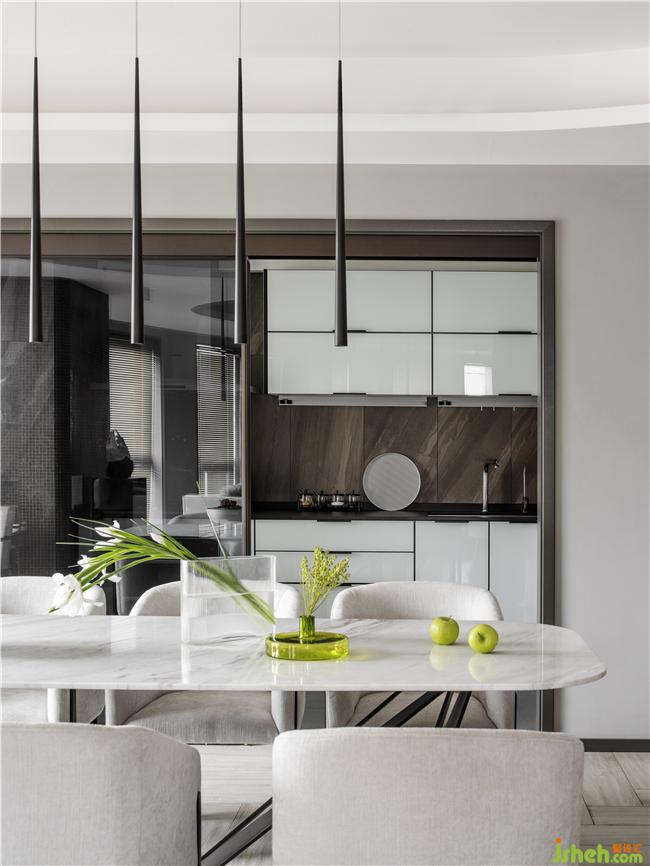 2、跳出思維定勢(shì),順應(yīng)原始建筑結(jié)構(gòu),把空間布置成扇形。弧線增強(qiáng)空間流動(dòng)感的同時(shí),也把所有房間串聯(lián)起來(lái), 扇形結(jié)構(gòu)從生而有之的缺陷搖身一變成為亮點(diǎn)和看點(diǎn),甚至多了幾分浪漫感覺(jué),實(shí)現(xiàn)了讓劣勢(shì)變優(yōu)勢(shì)這樣「Magic」的可能。