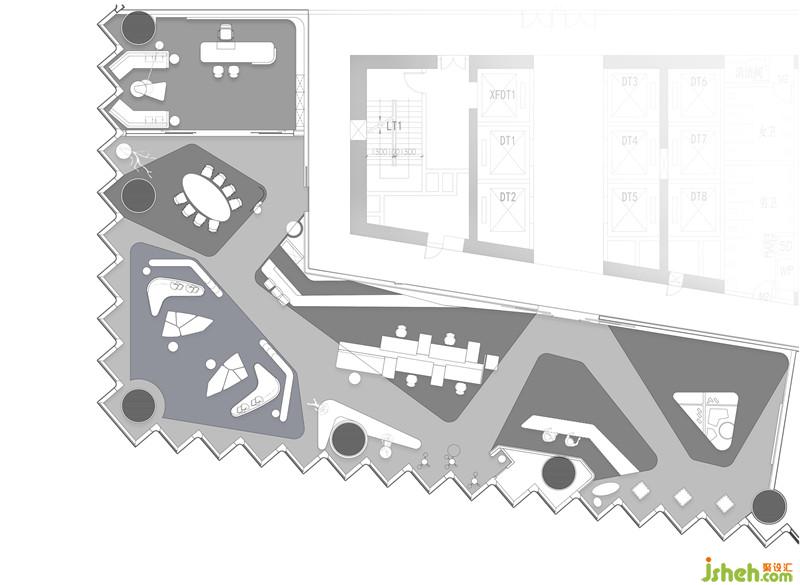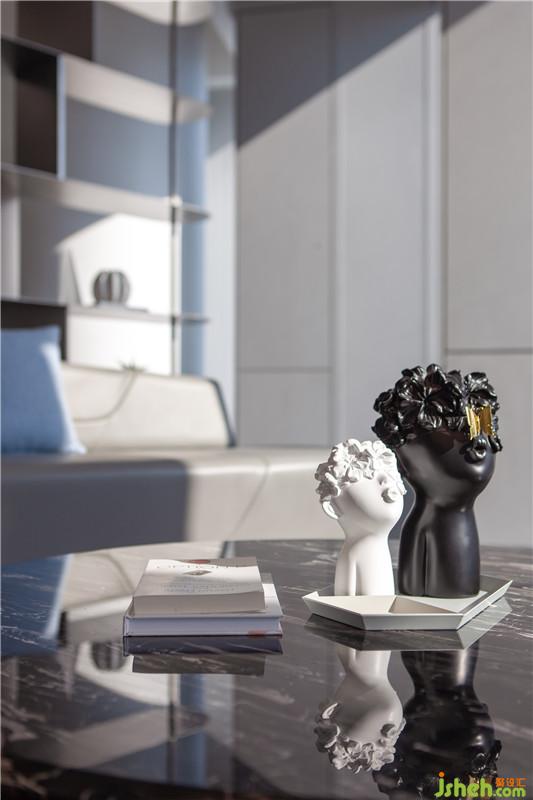 在設(shè)計選材上,設(shè)計師則力求物盡其用,用統(tǒng)一而純粹的材料把“用”發(fā)揮到極致。當極簡的白色亞克力天花在波瀾起伏的造型下,透過玻璃捕捉光的溫度;當高級灰不再作為奢華的唯一表達,而是嘗試以豐富肌理感來呈現(xiàn);當以絹絲綢帶為意向鑲嵌的Tiffany藍藝術(shù)玻璃屏風如靈動的寶石游走于空間,平衡空間未來感中的一抹“溫暖”;當幾何面料的沙發(fā),灰色的地毯和鏡面不銹鋼的茶幾,形成有趣又充滿現(xiàn)代酷感的軟式搭配組合的圍合。一切浮現(xiàn)的簡約未來、輕盈靈動與溫潤質(zhì)感,正是這個空間打動人心的所在。