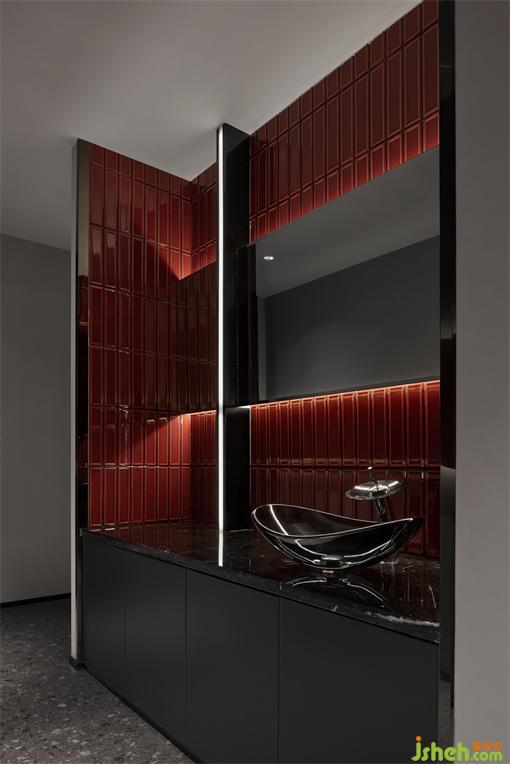 葡萄酒的品鑒與其他酒類較為不同,在這一過程中,被倒進高腳杯的酒液會被數(shù)次搖晃,并會在杯壁上產(chǎn)生掛杯這一現(xiàn)象,而在此時仔細觀察酒杯,就會看到掛杯的酒液呈漸變的層次由淺至深延伸到杯中液面。由此,設(shè)計團隊決定以諸多葡萄酒中具有廣泛代表性的紅酒顏色為設(shè)計基礎(chǔ),以掛杯后的漸變層次作為主要表現(xiàn)形式進行場地設(shè)計。
