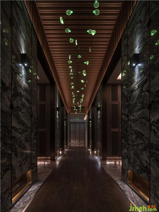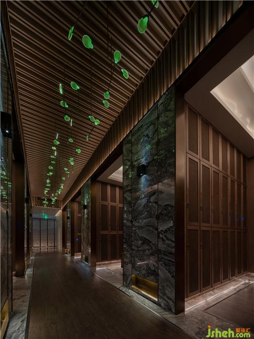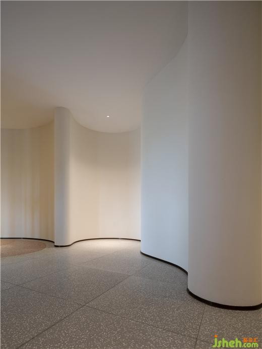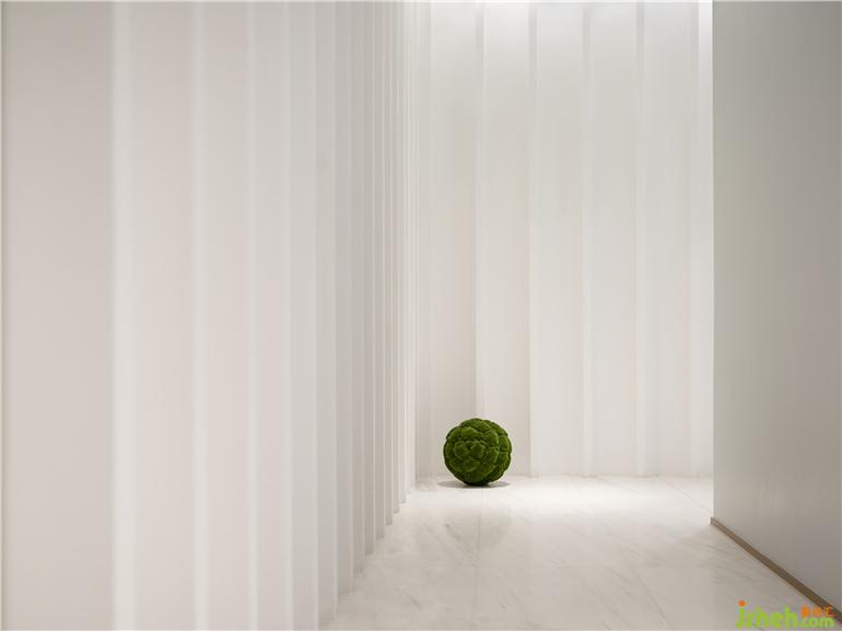 取曲折的河岸沿線為靈感,呂邵蒼設(shè)計(jì)將深淺迭起的曲線作為更衣室區(qū)域的墻體的主要元素,水療設(shè)計(jì)低調(diào)沉靜空間有著舒緩情緒的作用,而在曲徑通幽的探尋之后,柔白的光影給予了柳暗花明的反差,施然感受到了水的律動(dòng)與溫柔。