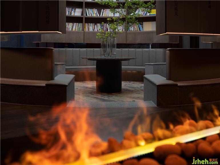 在一處高端的水療中心,圍一間雅致書(shū)齋,是呂邵蒼設(shè)計(jì)的神來(lái)之筆。水療設(shè)計(jì)有澎湃熱烈的火苗,烘托出一絲暖意;有清雅相與的綠植、養(yǎng)出一份心性;更有將經(jīng)典名著的書(shū)脊放大、作為隔段的絕妙巧思,用以寄托君子清冷之情懷。