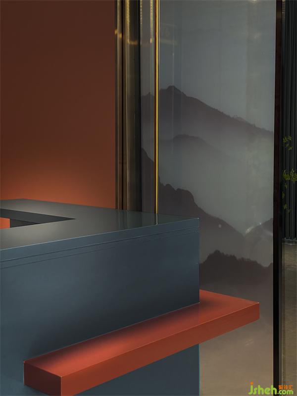 JUN uses modern materials and traditional design elements to deduce the simplicity and dignity of the rich architecture, and also shows a quiet and peaceful scene. The folding screen in the background of the tea tasting area draws on the landscape architecture of Wangchuan map and the shape of the wall. The mountain elements are extracted and expressed through modern materials and art installation techniques to form a unique spatial experience.