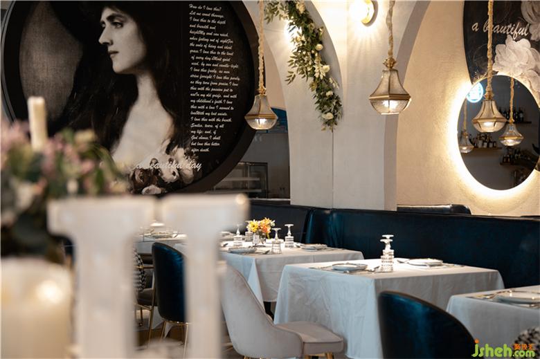餐廳設(shè)計的天花借助于鏡面不銹鋼,形成富有沖擊力和戲劇性的視覺效果。搭配現(xiàn)代歐式畫藝,極盡簡約之美。柔軟的布幔裝置的巧妙介入和運(yùn)用,打造豐富的空間層次感與曲線美,結(jié)合復(fù)古吊燈氤氳出的柔和燈光,為整個空間渲染出了一種濃厚的歐式風(fēng)情,讓喧囂城市背后,更有寧靜感與儀式感,體現(xiàn)出自然浪漫的品牌格調(diào)。