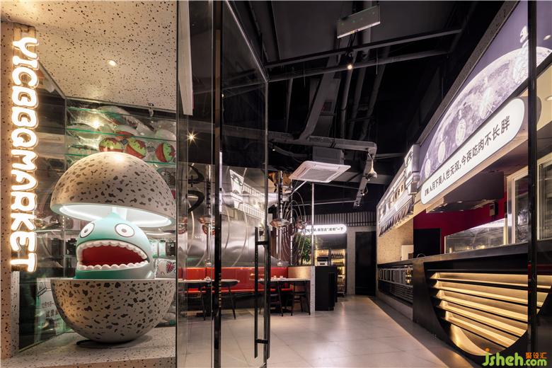 整體的未來感的結(jié)構(gòu)餐廳設(shè)計,讓食客仿佛置身神秘滋拉星球,營造出一種回到未來的既視感。