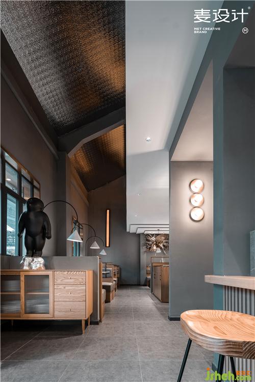 美學(xué)不止是表面的一串符號、一組家具,它還是人們內(nèi)心的一種追求。麥設(shè)計(jì)基于對城市人文蘊(yùn)涵的深度認(rèn)知,探尋設(shè)計(jì)與生活、設(shè)計(jì)與藝術(shù)碰撞融合下的精神活力,演繹別具一格的創(chuàng)意場景?;鸱蛐÷萏柌蛷d設(shè)計(jì)在整體風(fēng)格方面,手法上提煉工業(yè)風(fēng)的構(gòu)建元素,拋去粗獷的重金屬感和冷色調(diào),保留一些建筑原始的材質(zhì)肌理,搭配綠植軟裝應(yīng)用,在樸拙的空間構(gòu)架中消解拘束感,呈現(xiàn)出大氣又不失細(xì)膩的藝術(shù)美感。