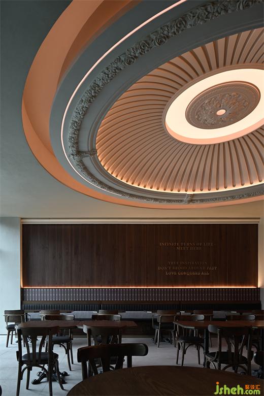 古典主義講求秩序與對(duì)稱,現(xiàn)代主義則強(qiáng)調(diào)幾何與實(shí)感,讓歷史與現(xiàn)實(shí)重合,就要將古典與現(xiàn)代重組。餐廳設(shè)計(jì)大堂的廊角處,拱頂立柱與三角鋼琴遙相呼應(yīng),隨腳步的深入,時(shí)間也一并緩慢流淌,宛若一場(chǎng)跨越時(shí)間的年代對(duì)話,將歐洲中世紀(jì)極致精巧的設(shè)計(jì)理念煥活于空間之中。