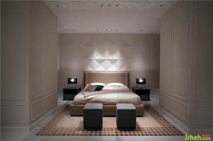 品牌最經(jīng)典的鉆石格紋,以不同的形式重新詮釋并且應(yīng)用在臥室的背景墻,并結(jié)合光影之后呈現(xiàn)出柔和并且豐富的變化,旨在表達(dá)出這種‘出類拔萃’。