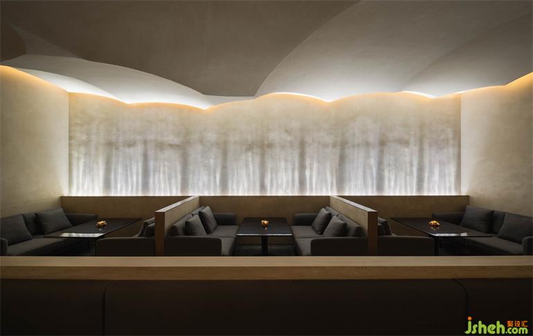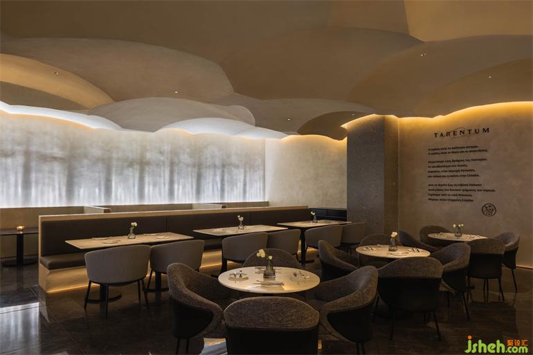 MARS巧妙設(shè)計(jì)了一系列沙丘狀的拱形吊頂,并使之成為聯(lián)系不同高度空間的紐帶。這在解決了室內(nèi)凈高問(wèn)題的同時(shí),餐廳設(shè)計(jì)還創(chuàng)造了一片洞穴般獨(dú)特的藝術(shù)空間。