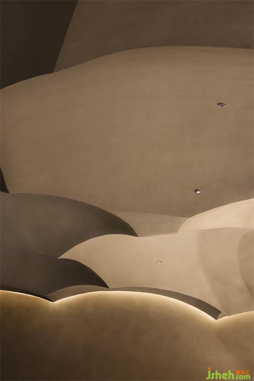 MARS designed a series of dune-shaped arched ceilings that serve as a link between different heights. This solves the problem of indoor height and creates a unique art space like a cave.