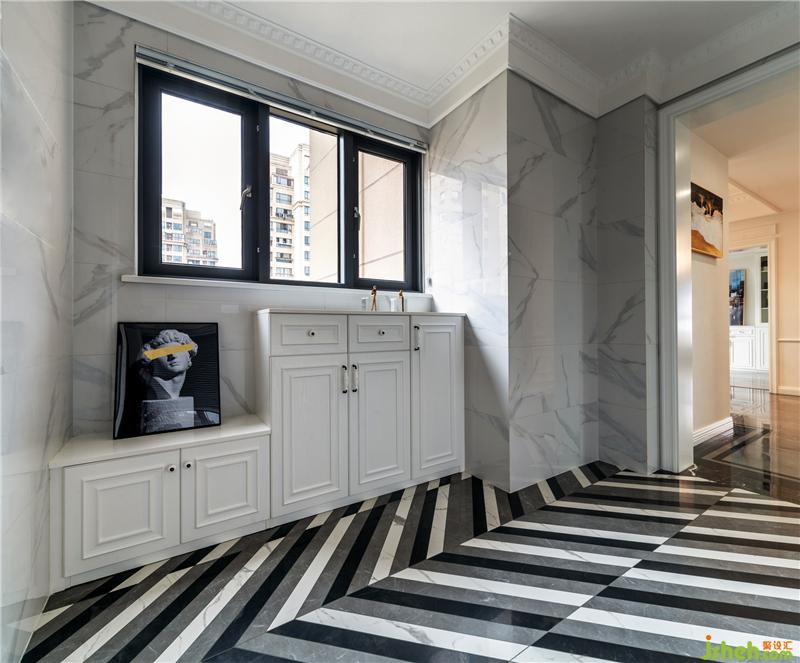 減少不必要的裝飾,保留最純粹的烹飪樂趣,外部陽光進入廚房后,經(jīng)過瓷磚反光效果,使得廚房空間更加敞亮通透,有時候愛很簡單,一句安慰,一個背后的擁抱,再有一碗你精心煲制的熱湯,此生足以。裝修設(shè)計
