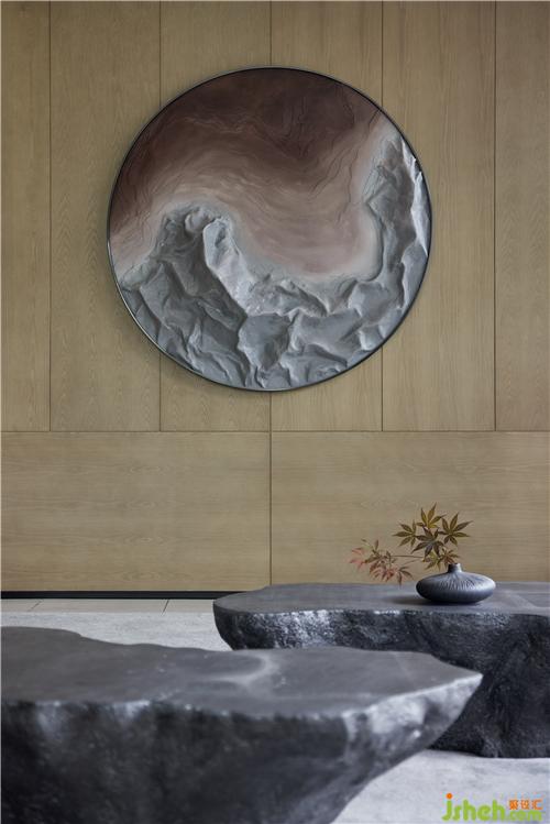 沙盤區(qū)以方形造境,儒道并蓄,動(dòng)靜相蘊(yùn),于空間中孕育出禪意之風(fēng)。布局承續(xù)中軸對稱之法,契合中和雅正之美。