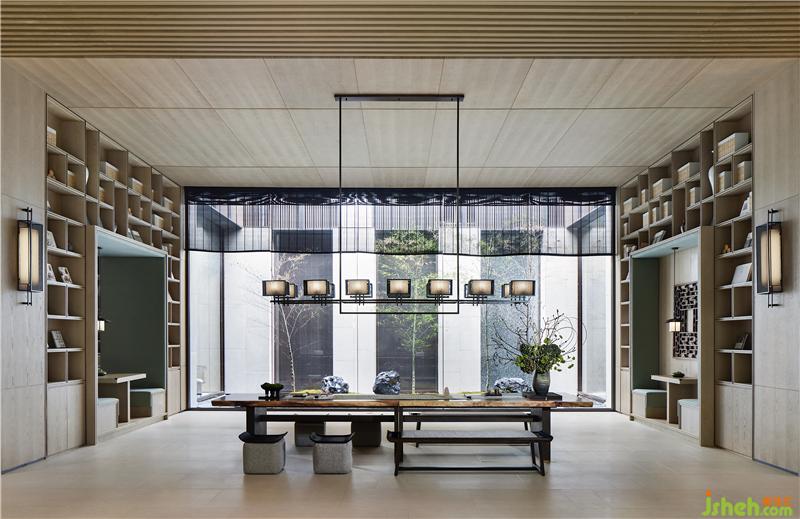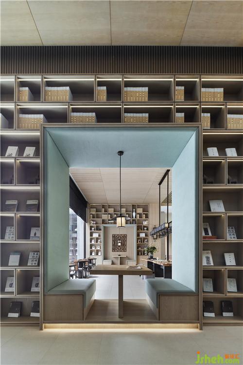 在閱讀空間設(shè)計(jì)師注重形式與功能的結(jié)合,為空間注入一束光折射出坐落于繁華城市中的一座書島。禪茶與文字匯聚成一葉扁舟,緩緩流淌在空間中去探尋…