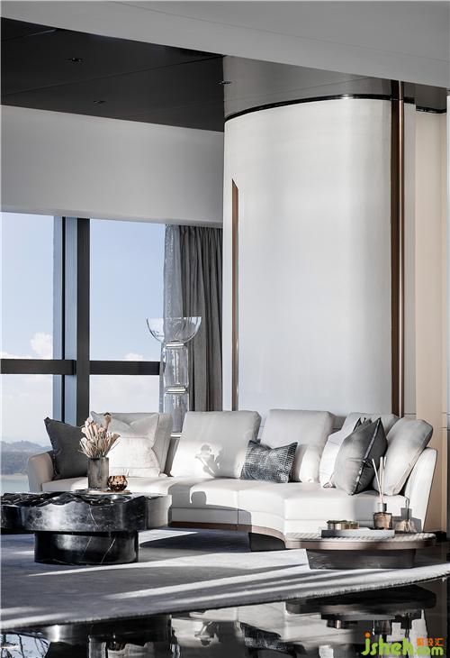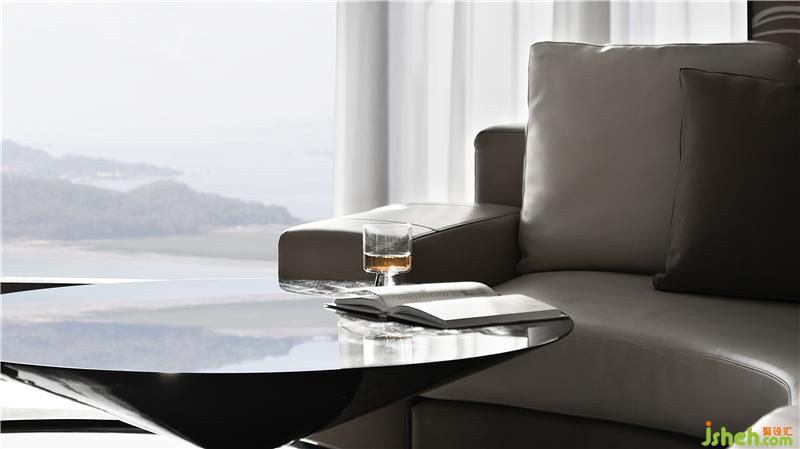 半圍式的洽談區(qū)有效過(guò)濾了外界的繁雜又保留獨(dú)立性,使之空間疏密有致而又互相滲透。在大幅玻璃幕墻下的自然光,配合空間選材質(zhì)感,靜默流動(dòng)在光滑的地面,令空間在虛實(shí)相間,遠(yuǎn)遠(yuǎn)看去,仿佛呈現(xiàn)在波光粼粼的海面上。