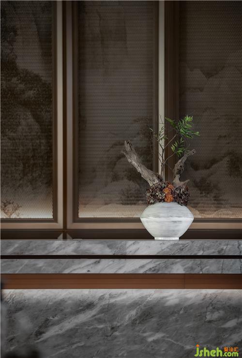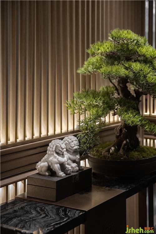 漫思MANS以格柵和“木”元素的“古”作為東方謙遜的美學(xué)語言,將東方謙和高雅的精神風(fēng)貌納入空間當(dāng)中,手法上去繁化簡(jiǎn),干凈的線條使得整個(gè)空間呈現(xiàn)“禮”的秩序感,從而凸顯東方形制的秩序與挺拔的視覺感。