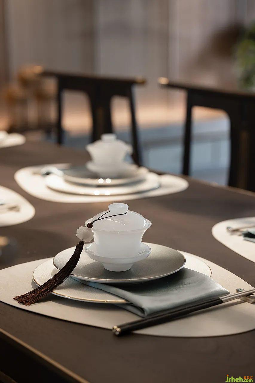 餐廳與客廳分而不割,互相滲透,在自由的空間中形成家庭社交空間。無(wú)隔斷設(shè)計(jì)使空間關(guān)系更緊密,生活場(chǎng)景豐富多彩,帶給一家人舒適優(yōu)雅的用餐環(huán)境與社交體驗(yàn)。陳設(shè)以“陶都文化”融匯美好器物延展?fàn)I構(gòu)空間,呈現(xiàn)風(fēng)雅東方詩(shī)意生活。
