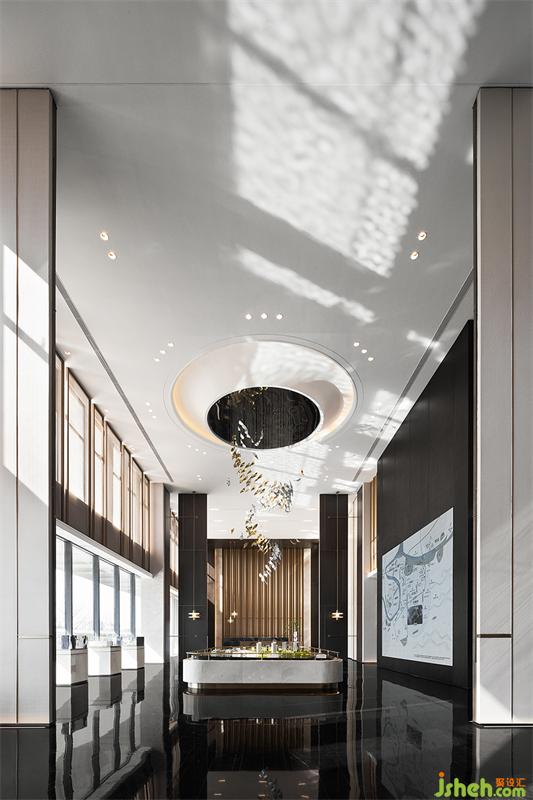 水光瀲滟,深蘊(yùn)著細(xì)膩的感性脈絡(luò)。步入前廳,悉見空間延綿的藝術(shù)情懷,一場張弛有序的空間敘事由進(jìn)入儀式感的場域開始,以現(xiàn)代主義美學(xué)及精尚的質(zhì)感,定制出屬于這個空間的設(shè)計(jì)語言。