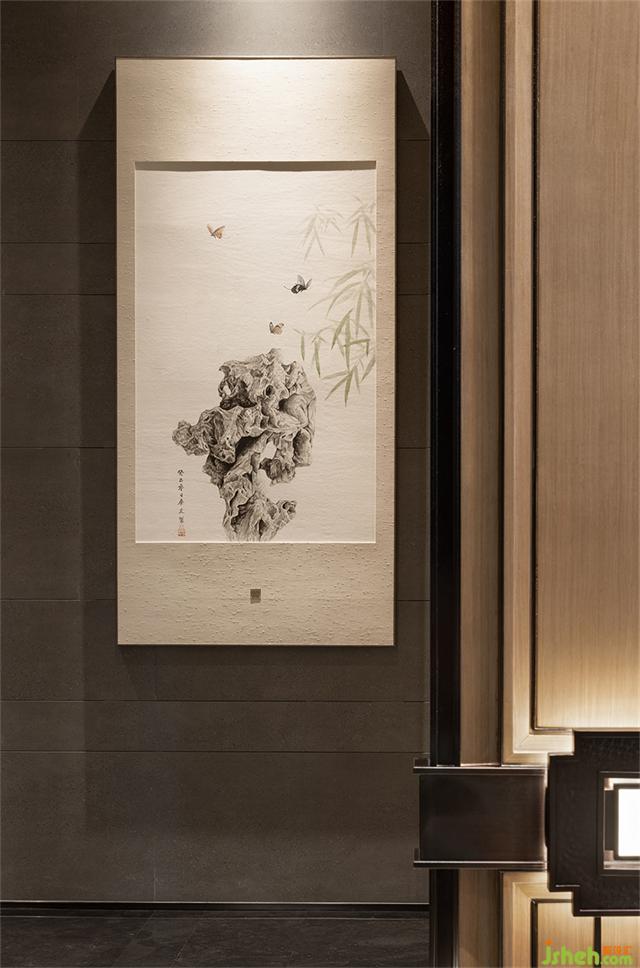 古銅金屬網(wǎng)眼的太湖石藝術(shù)裝置,營銷中心設(shè)計(jì)凝聚著清俊靈動的東方神韻。人在其中,心緒樸素而無瑣屑。