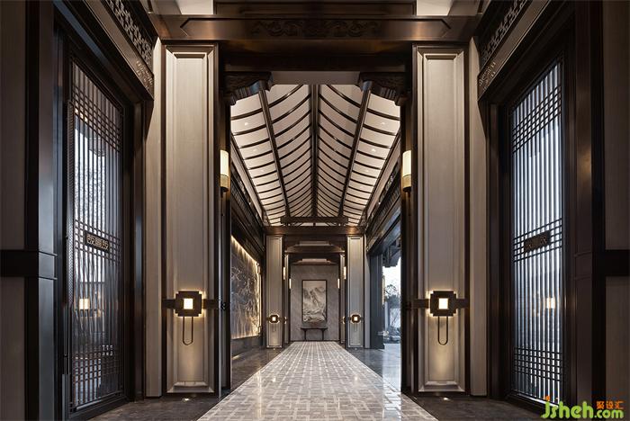 以禮相待是東方的傳統(tǒng)。一進(jìn)門為禮,迎賓初日,萬千威儀。營銷中心設(shè)計項目提取紫禁城之精髓,融合江陰適園之造景,用現(xiàn)代的工藝營造自然山水氣韻景觀,傳承東方禮序。門廳承襲中式府邸的傳統(tǒng)對稱性布局,再現(xiàn)威儀大氣的禮序空間。人字形天花以傳統(tǒng)建筑結(jié)構(gòu)為原型,傳承千年建筑儀范,恢弘成勢,更賦予了空間雍容端莊的氣質(zhì)。